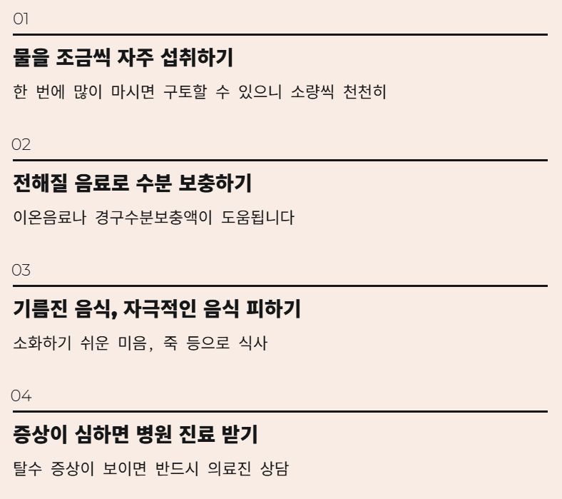 - 물을 조금씩 자주 섭취하기