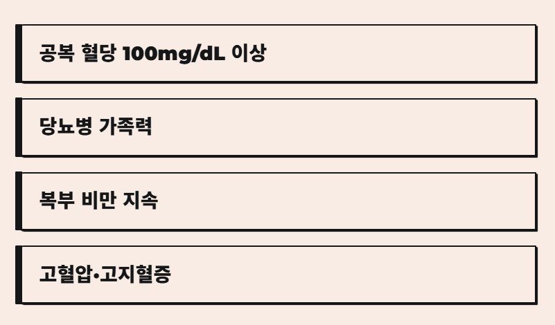 다음 중 하나라도 해당된다면 단순 증상으로 넘기지 말고 혈당 검사를 고려하는 것이 좋습니다.