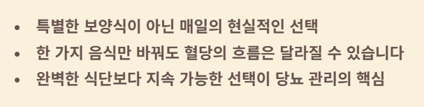 당뇨에 좋은 음식 10가지는 특별한 보양식이 아니라, 매일의 식사에서 혈당 부담을 줄여주는 현실적인 선택입니다. 오늘부터 한 가지 음식만 바꿔도 혈당의 흐름은 달라질 수 있습니다. 완벽한 식단보다 지속 가능한 선택이 당뇨 관리의 핵심입니다.