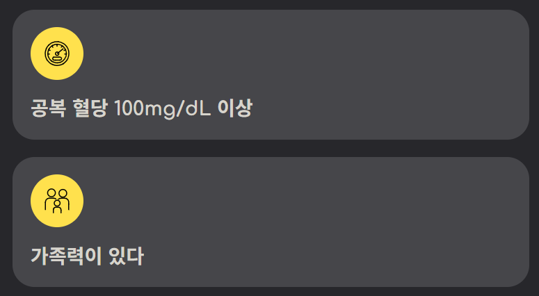 - 공복 혈당이 100mg/dL 이상 나온 적이 있다