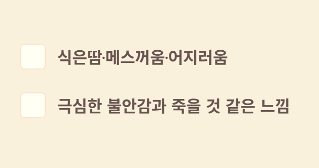 - 식은땀, 호흡곤란, 어지러움이 함께 나타날 때